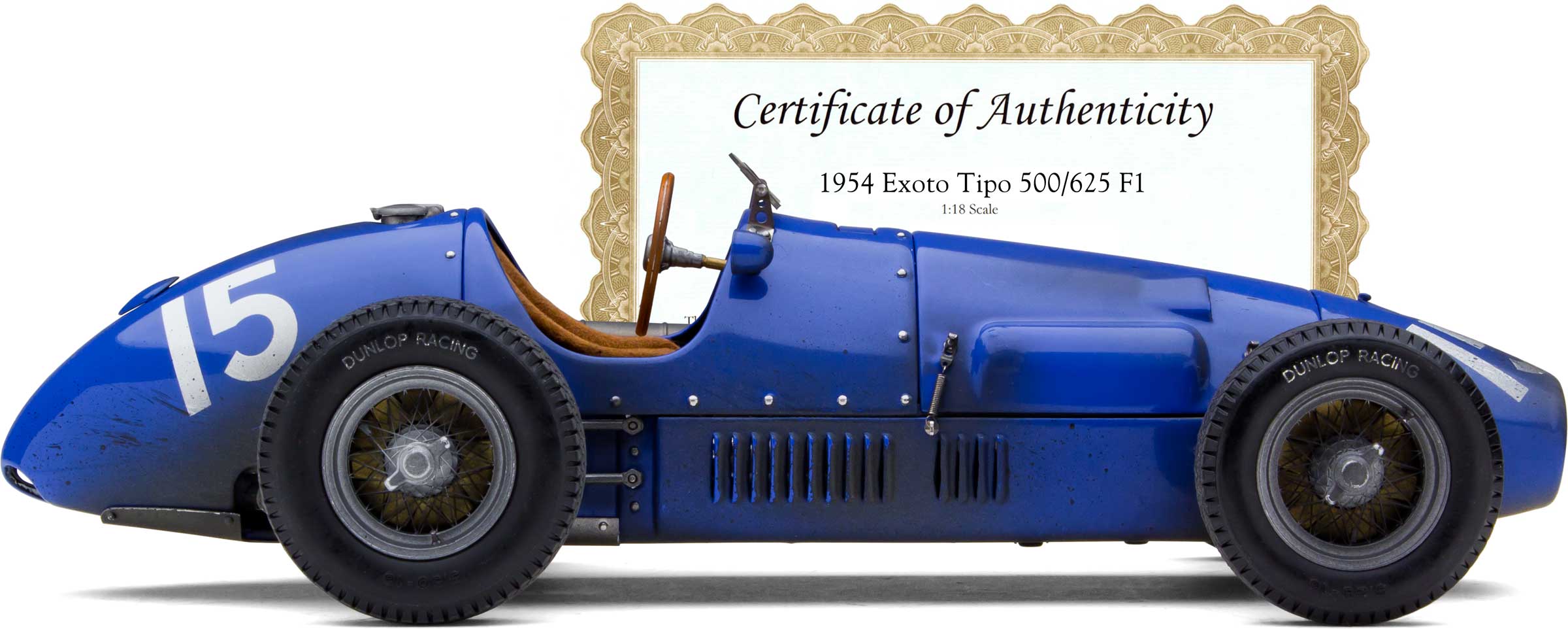 Exoto is pleased to present the Grand Prix Classics, a full line of collectors quality models designed in wonderful 1:18 scale. These incredible replicas feature over 130 individual parts with details that include fully functioning steering, working front and rear suspension, highly detailed driver and cockpit, genuine tread pattern on rubber-like tires, accurate wiring and plumbing, actual wire mesh gauze over the velocity stacks, individually cast exhaust headers, a wealth of photo-etched parts and more…