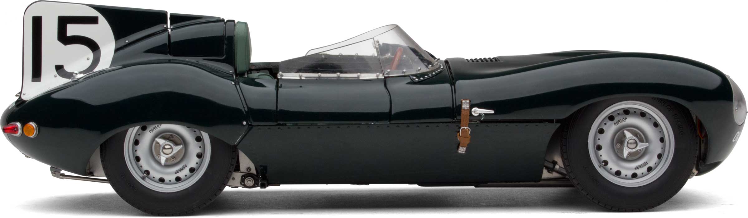 The introduction of our new Exoto XS Jaguar D-type collection pays tribute to the marque’s immortal association with Le Mans by describing, in gracious three dimensional Art Form, the story behind the victories and the disappointments! The new Exoto XS Jaguar D-type is a testament to the dominance of the Coventry Leaping Cat at Le Mans. No less than 2600 parts have been painstakingly designed, molded, stamped, shaped, and machined to bring you this New Masterpiece in model engineering! Starting with the short-nose, different models will be released in their chronological and historical order — with very careful and intricate attention to each and every detail! The new Exoto XS Jaguar D-type, let us build one for you!