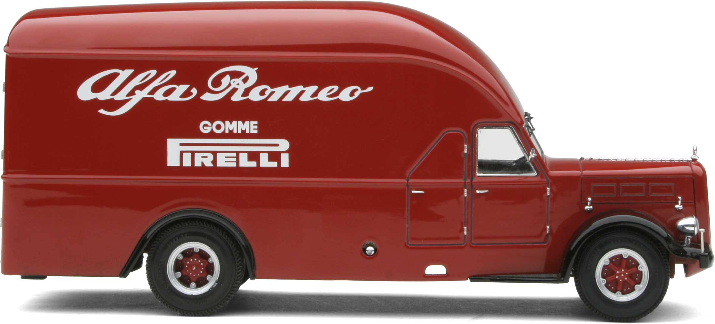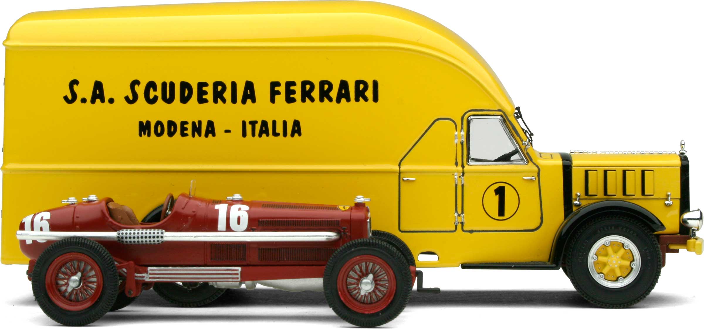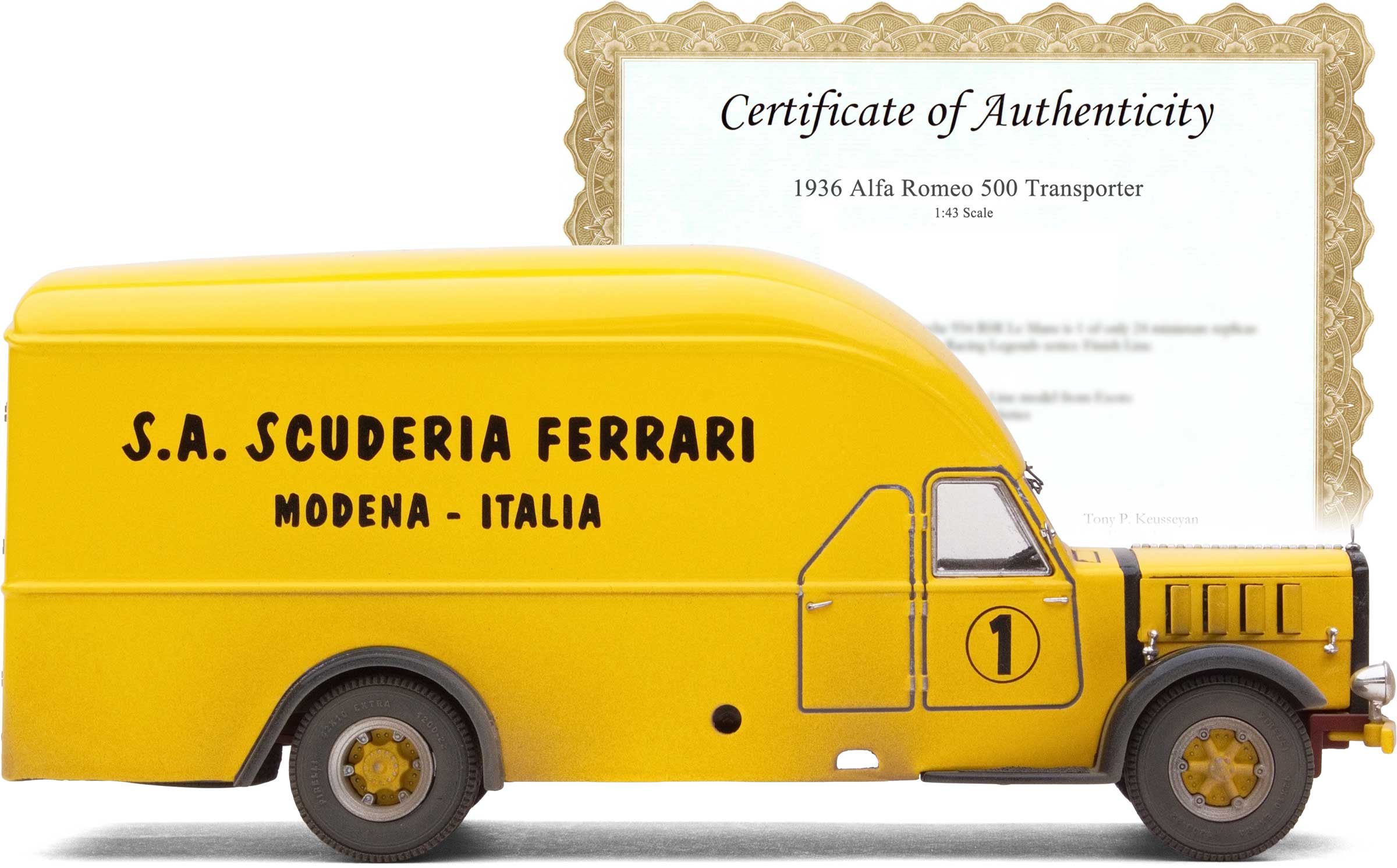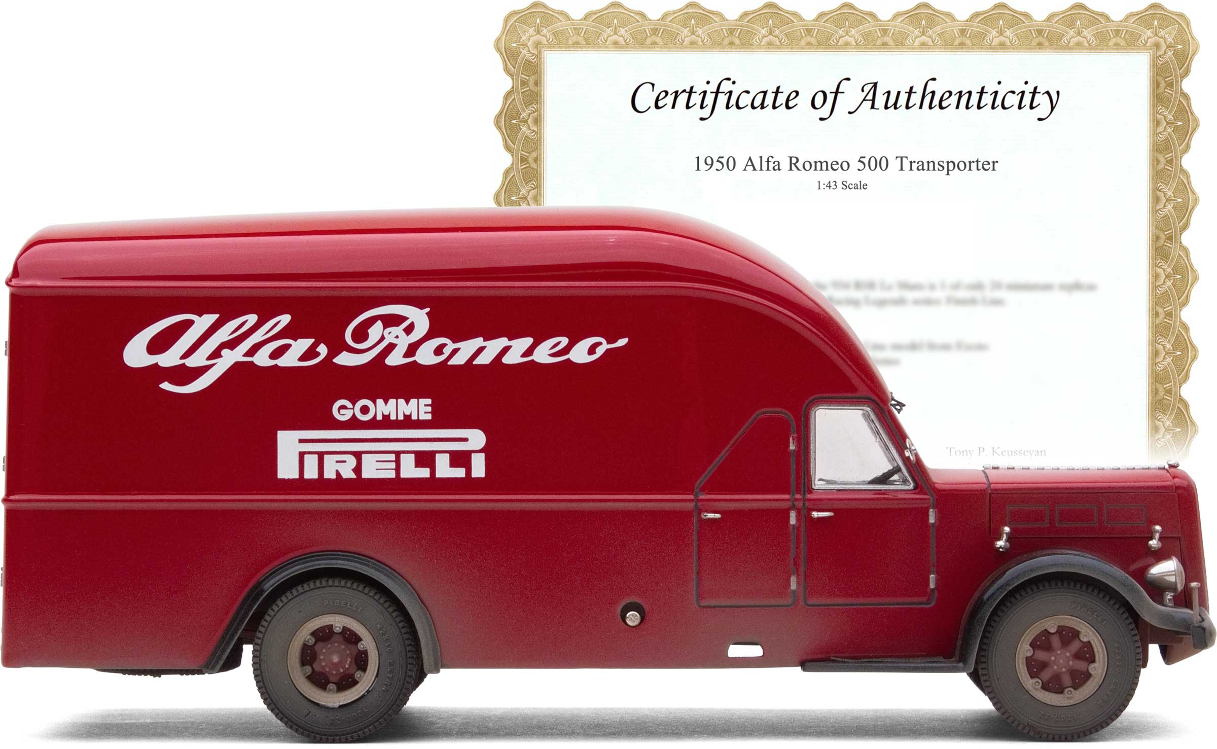 Exoto43 blows the competition away with remarkable 1:43 scale details. Exoto has even managed to engineer nostalgia into our 1:43 scale miniature Alfa Romeo 500 Racing Car Transporters! Our proven ability to reproduce minute details in 1:18 scale has been translated into precision on an even smaller scale. Tight seems, precise casts, genuine photo-etch metal details, and high grade materials set Exoto43 replicas apart! The rear doors, featuring a lock operated by a miniature chromed handle, is sure to bring a smile to any collector’s face. Rolling wheels and positionable loading ramps allow the Alfa Romeo 500 to be positioned for loading.