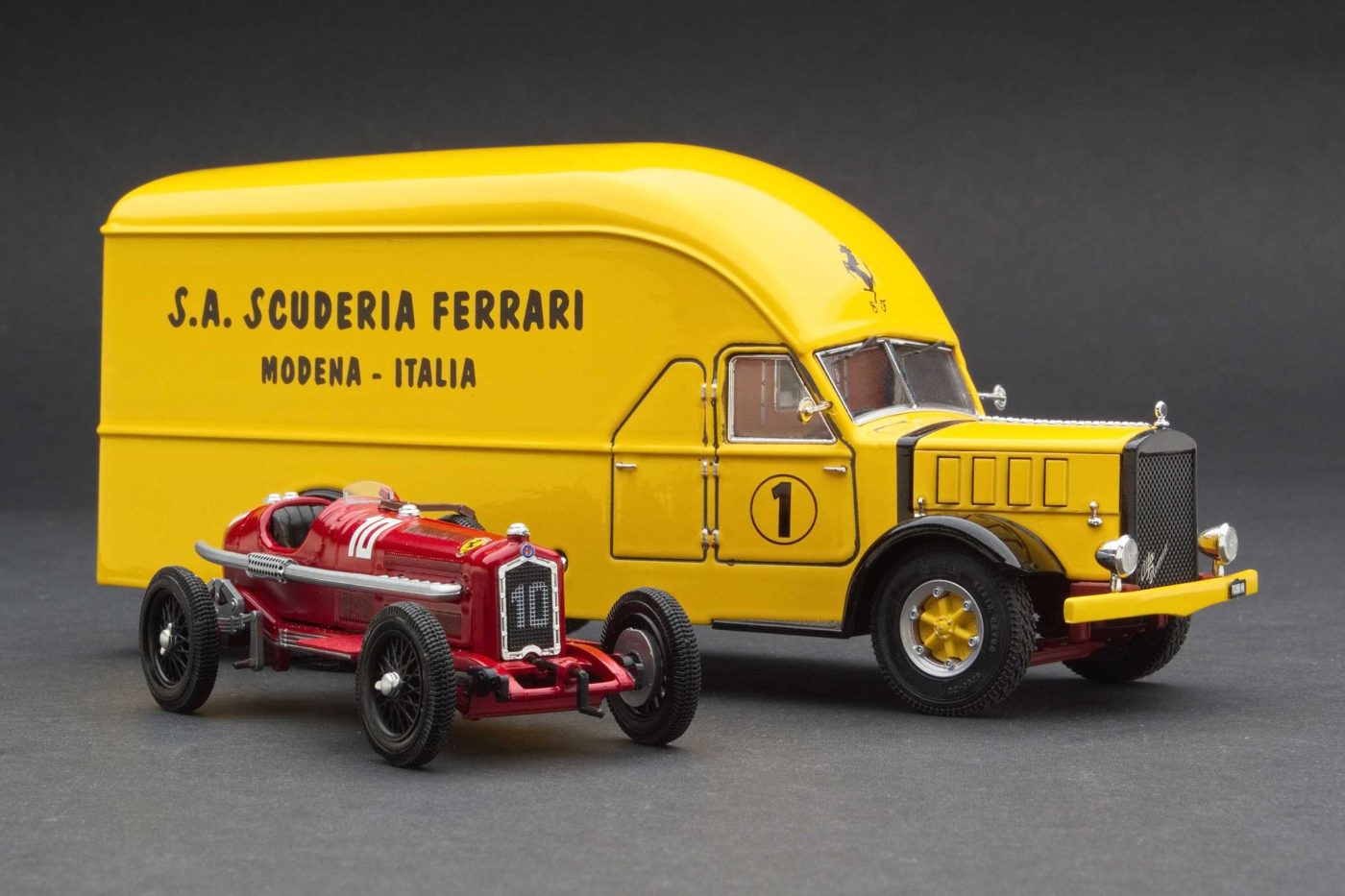 On the road, Ferrari’s entries made a strong impression, showcasing speed, resilience, and the team’s growing reputation for competitive excellence in international racing. Among them was the #10 Alfa Romeo P3 race car, which carried the Scuderia’s ambitions in that year’s Targa Florio, scoring a victory in the hands of Achille Varzi. A 1:43 scale Alfa Romeo P3 #10 is included with this limited edition gift set.
