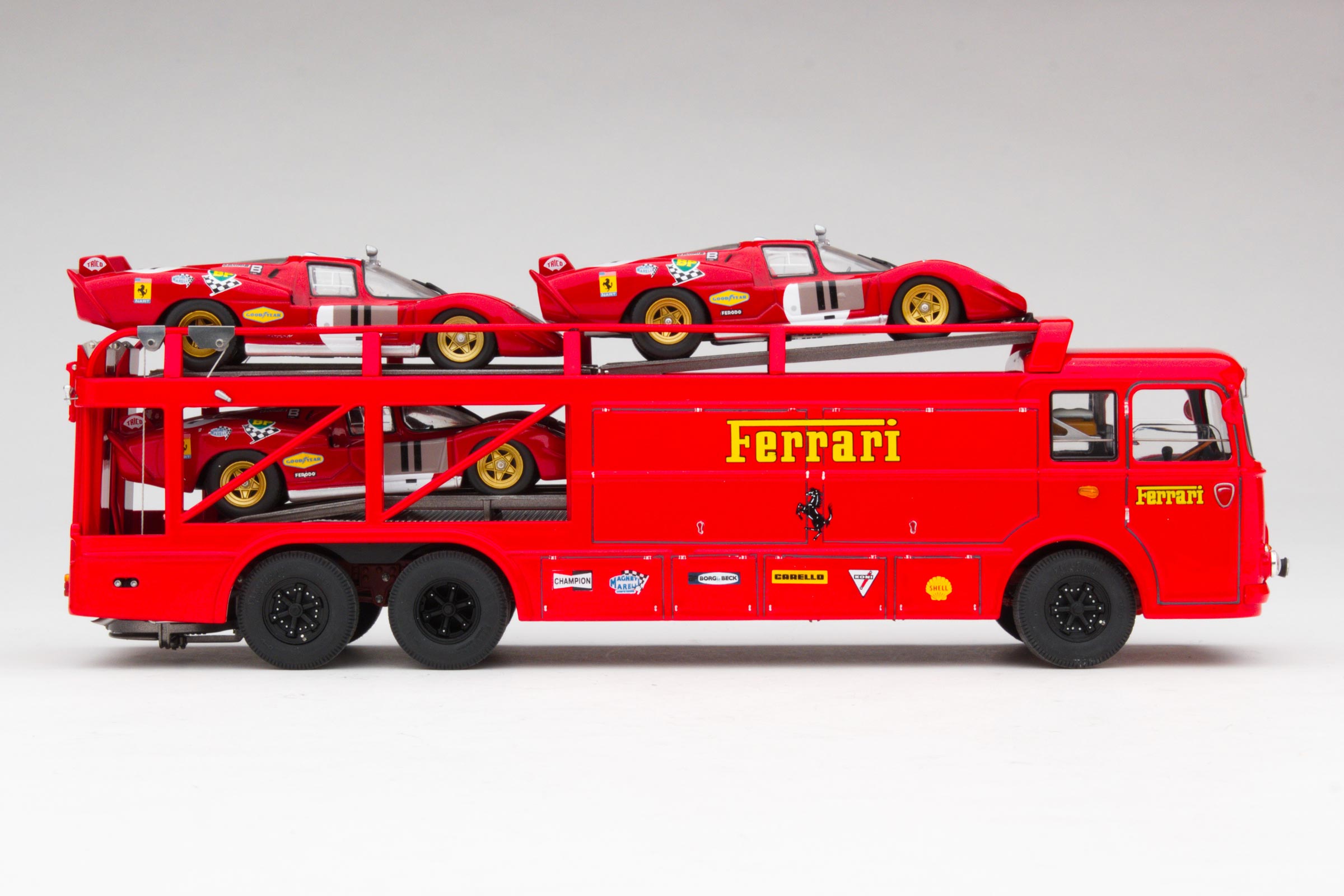 In 1970, David Piper’s Fiat/Bartoletti Tipo 306/2 transporter was repainted in red for Le Mans, the movie, where it stood in as the Scuderia Ferrari team hauler. This version of the truck appears prominently in the film, though it was also refinished to portray other team transporters during filming, and is often shown in the paddock and pit lane as a backdrop to the Ferrari 512 entries. The Ferrari cars themselves are central to the film’s drama, sharing the spotlight with the Porsche 917s in both on-track battles and behind-the-scenes sequences, making the red Bartoletti a recognizable part of the movie’s Ferrari presence.