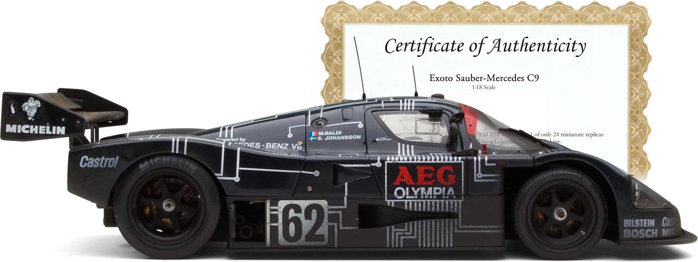![]() RLG18196 1:18 268 mm $6,400.00 RetiredExoto Sauber-Mercedes C9 Gift Set Winner, 1989 Le Mans 24 Hours | Jochen Mass, Manuel Reuter, Stanley Dickens | With Rolling Chassis |